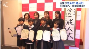 テレビ東京「ワールドビジネスサテライト」、AbemaTV「AbemaNews」にて「1/2成人式」のイベントの様子が放送されました。