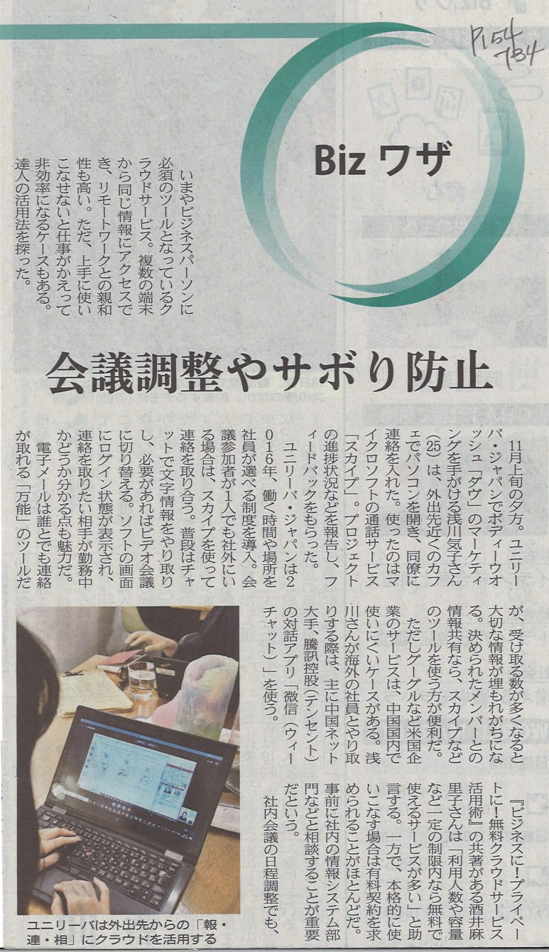 掲載媒体:日経新聞 BIZワザ 2019年11月19日